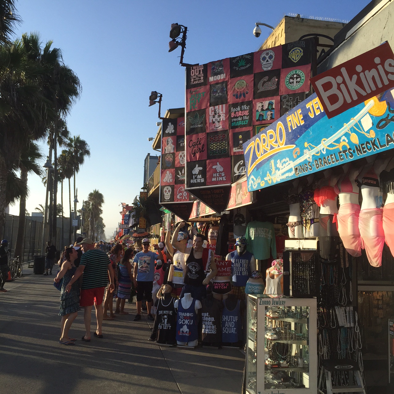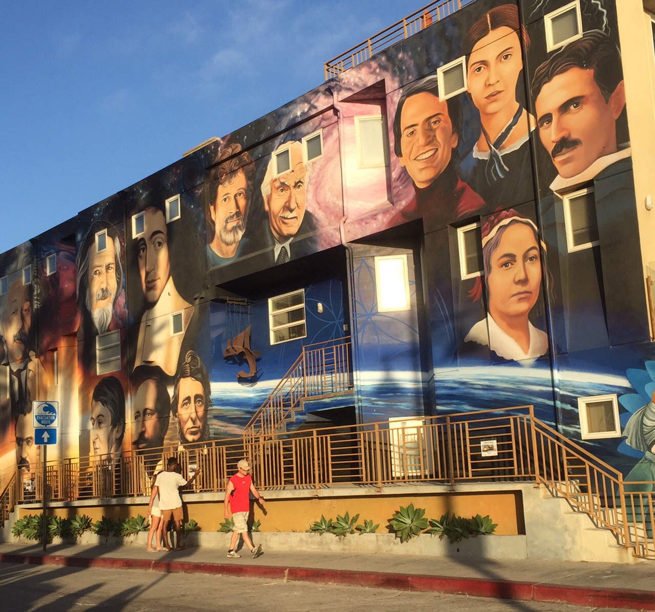 If you want to buy decorative sugar skulls (think: Dia de los Muertos), fried Oreos, bathing suits, or – of course – medical marijuana, you can find all of those things in triplicate along the boardwalk. If you walk the two-mile (round trip) or so stretch of boardwalk between Washington Boulevard and Venice Boulevard, you’ll pass a million faces that (in some crazy way) stop looking like strangers after a while: European tourists, chiseled men (on their way to “the” Muscle Beach), wild-haired teenagers with knee-high socks (heading to the basketball courts frequented by famous NBA players), skateboarders who are more agile on four small wheels than some humans are on two feet, pet strollers (yes, like actual baby strollers) brimming over with multiple small dogs (often of the same breed)… Venice’s people now feel like my own; in some small way, I like to think I’m now one of its colorful characters (having been a regular for four years).